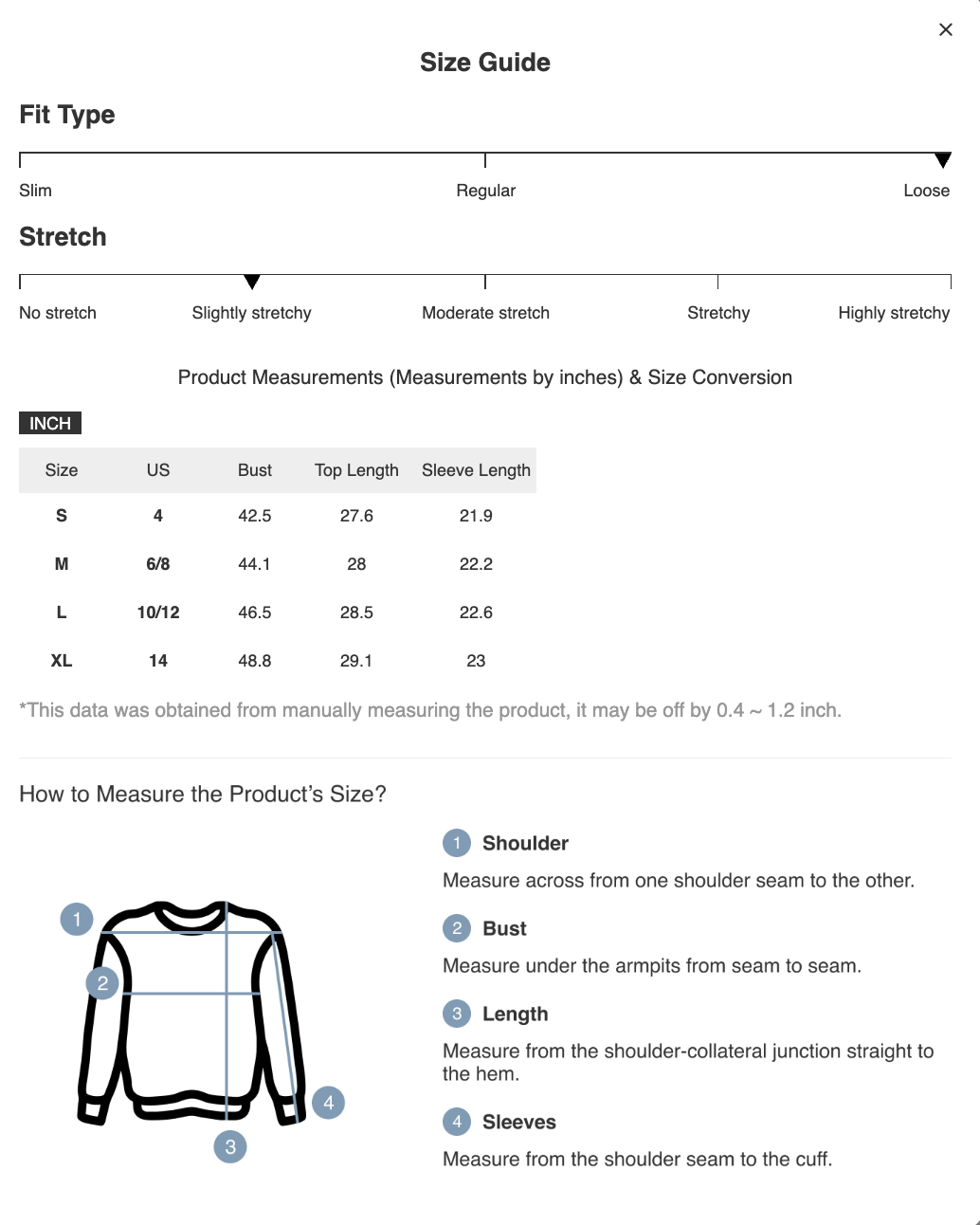 Size US Bust Top Length Sleeve Length